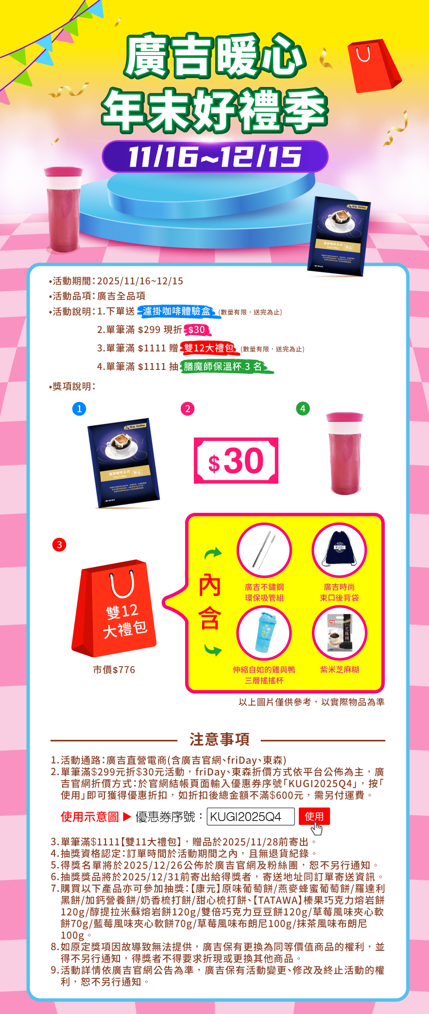 【活動】廣吉暖心年末好禮季-11/16~12/15