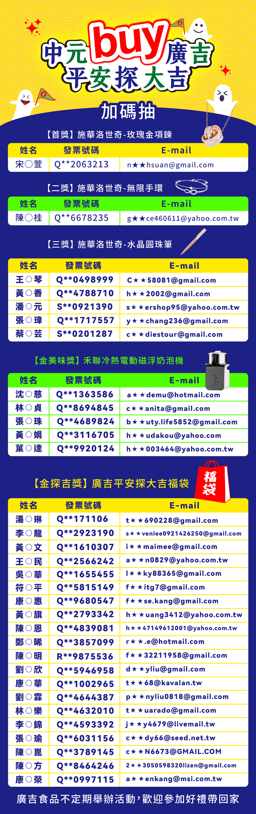 3.每個發票序號僅限登錄參加乙次,無法重複登錄抽獎。