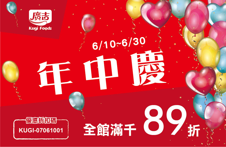 廣吉年中慶 全館滿千89折 『折扣優惠碼:KUGI-07061001』