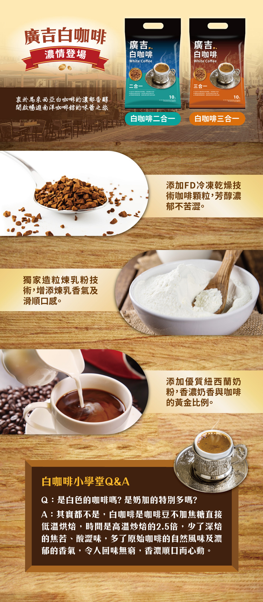 ※添加FD冷凍乾燥技術咖啡顆粒,芳醇濃郁不苦澀 ※獨家造粒煉乳粉技術,增添煉乳香氣及滑順口感 ※使用優質紐西蘭奶粉 ※全程MIT台灣製造