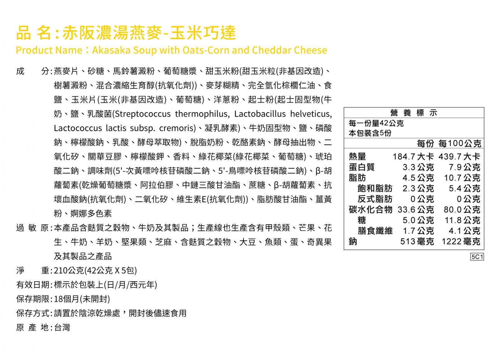 ◆ 燕麥量50%以上,濃郁感up、飽足感up、咀嚼感up ◆ 每份熱量不到190大卡,享受美食少負擔 ◆ 添加大燕麥片,含膳食纖維,增加美味豐富度 ◆ 日式風味玉米濃郁湯底,搭配切達起司與洋蔥提味,帶出濃郁奶香 ◆ 隨身包設計,攜帶方便 ◆ 即沖即食,輕鬆享受美味 ◆ 植物五辛素