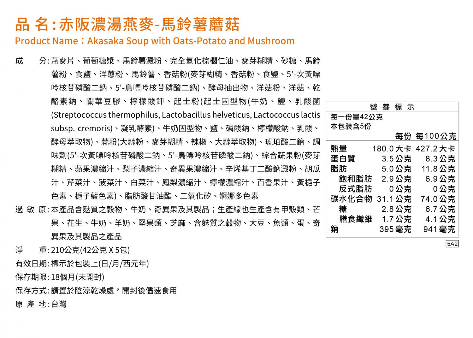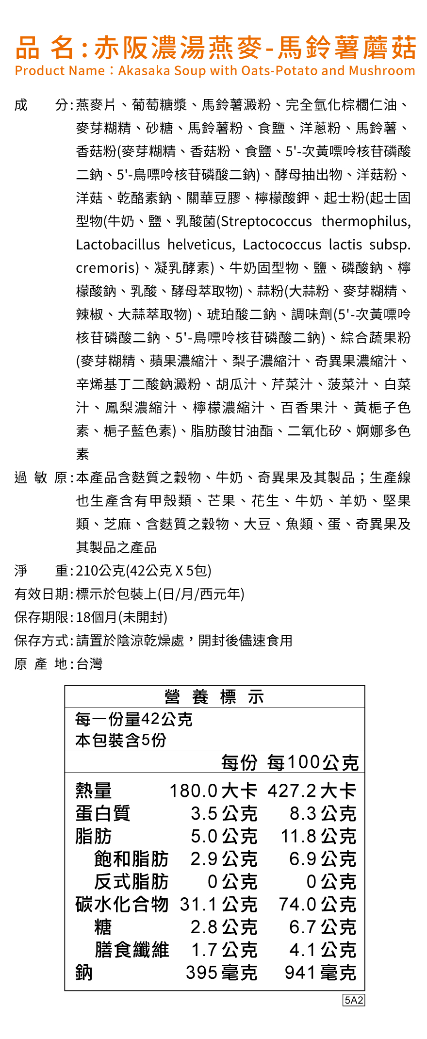 ◆ 燕麥量50%以上,濃郁感up、飽足感up、咀嚼感up ◆ 每份熱量不到190大卡,享受美食少負擔 ◆ 添加大燕麥片,含膳食纖維,增加美味豐富度 ◆ 日式風味馬鈴薯濃郁湯底,搭配蘑菇、洋蔥,滑順口感帶出鮮甜滋味 ◆ 隨身包設計,攜帶方便 ◆ 即沖即食,輕鬆享受美味 ◆ 植物五辛素